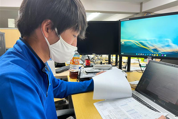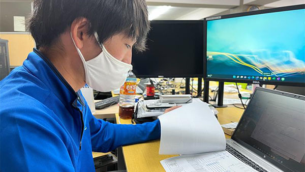 大学では別の分野を専攻していましたので見るもの聞くことの大半が初めて経験ばかりで、実際の現場では先輩方に着いていくことに必死でした。新しい環境に慣れるか不安もありましたが、アットホームで笑顔の絶えない職場環境と、温かい人柄の先輩方のおかげで慣れていくことができました。1日でも早く作業に携われるように知識を深めていきたいと思います。